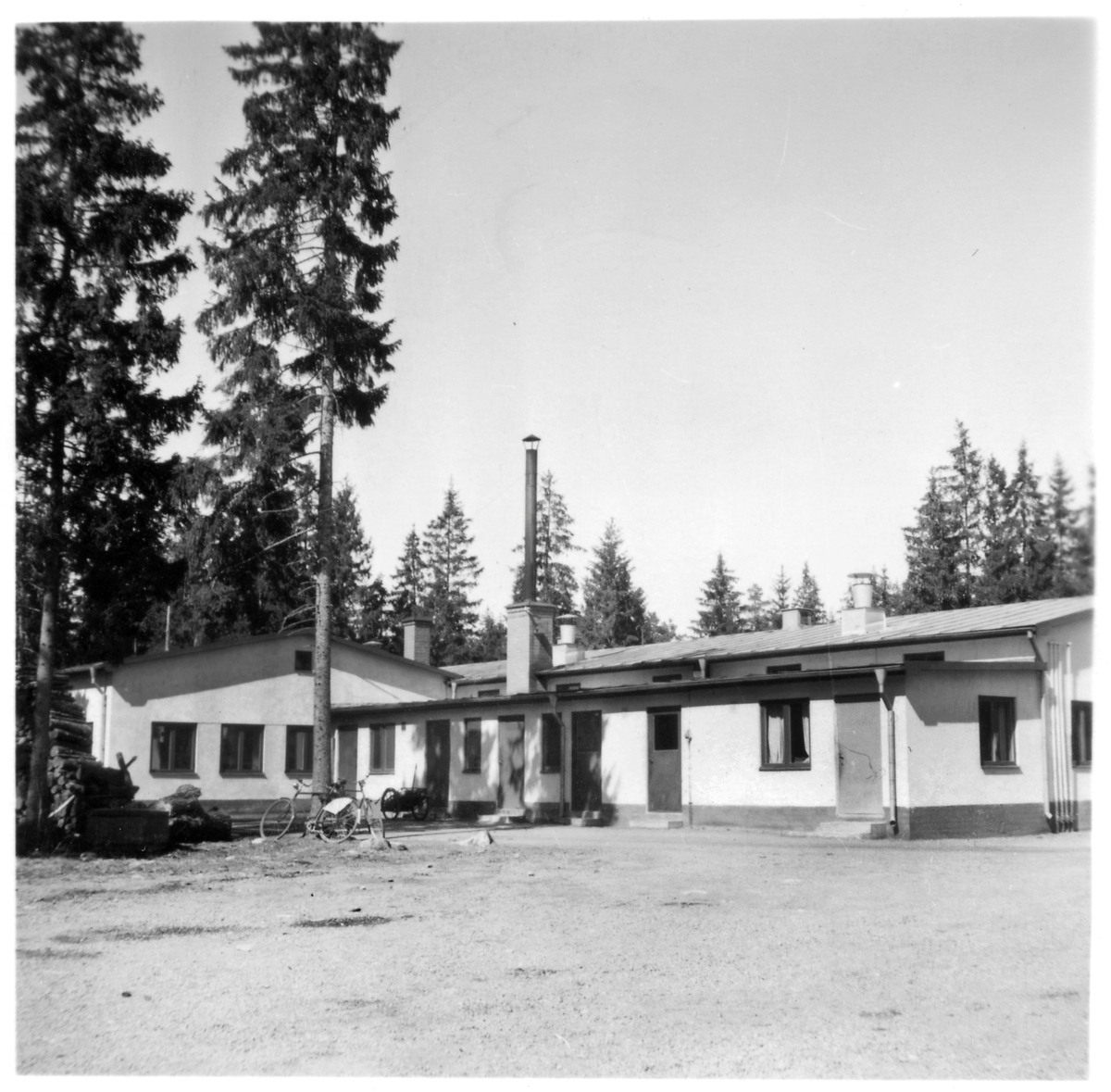 Vägstation H8, Ålem. Vägstationens huvudbyggnad med kontorsdel och i bakgrunden förrådsbyggnad.