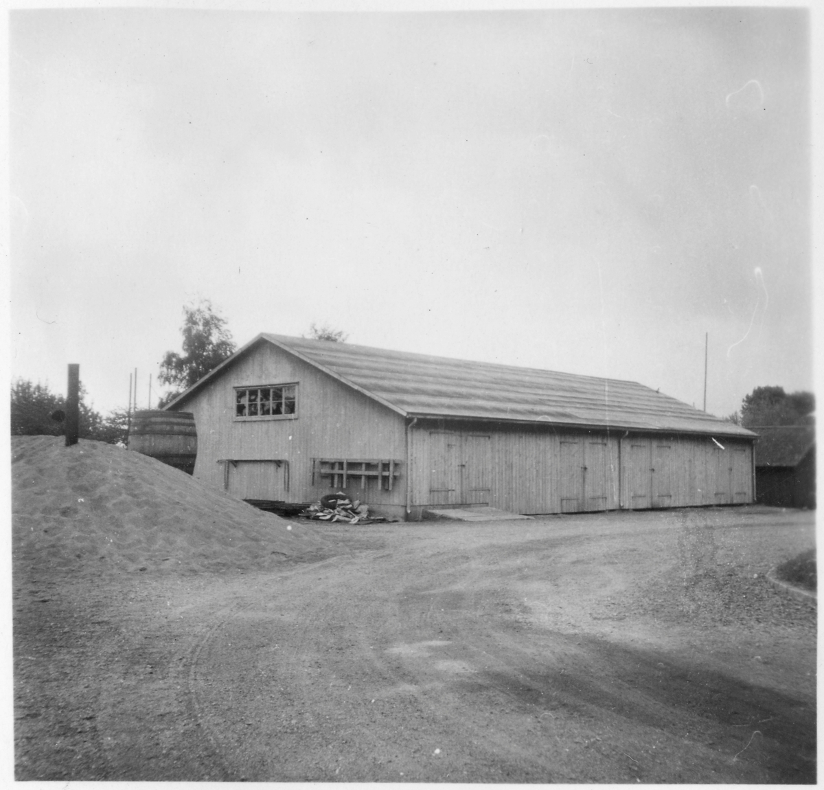 Vägstation T4, Svartå, filial Vretstorp. förrådsbyggnad. Vattentunna av trä.