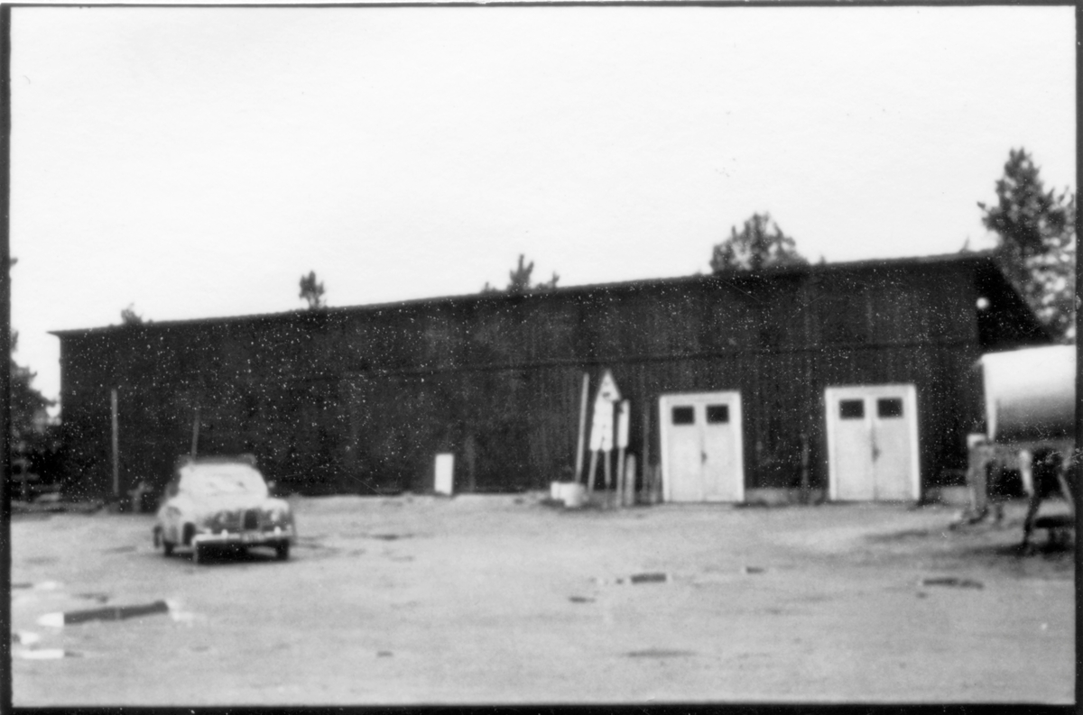 Vägstation Vmo X5, Edsbyn. Garagebyggnad. På garageplan Saab personbil.