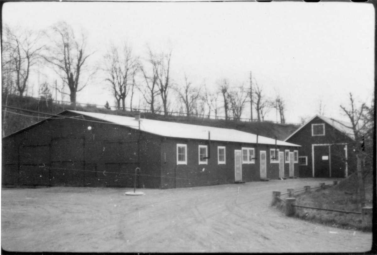 Vägstation T5, Ånstaberg. Garagebyggnad, i bakgrunden förrådsbyggnad.
