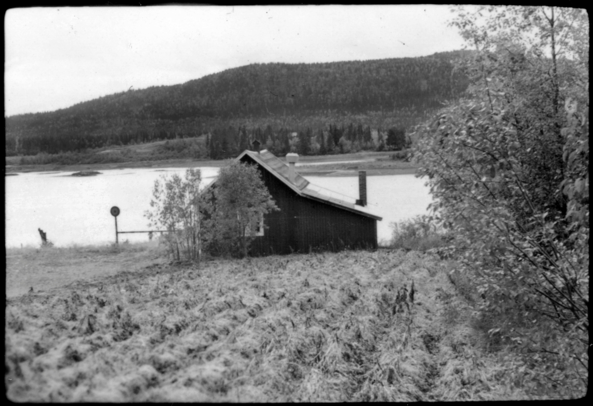 Vägstation AC20, Sorsele. Före detta kajanläggning vid Nyluspen, vid Vojmsjön. Förrådsbyggnad, eventuellt också manskapsbod. Vy mot Vojmsjön.