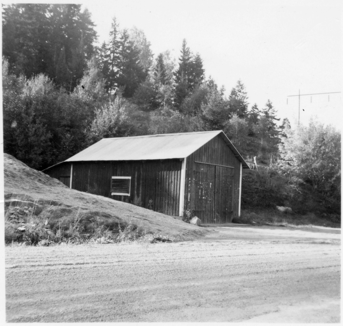 Vägstation D3 Malmby, filial Läggesta. Garagebyggnad i slänt.