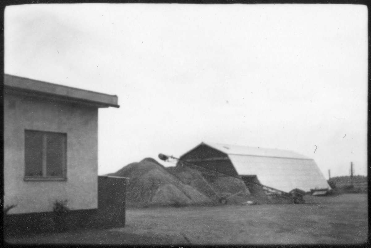 Vägstation Vmo E3, Boxholm, filial Ödeshög. Sand- och saltlada. Upplag av sand, bandtransportör.