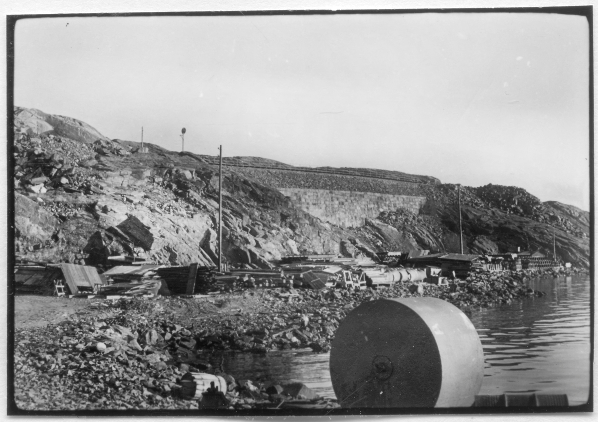 VFO, Färjevarvet, Fridhem. Strandparti, stenig strand. Diverse material, "skrot".