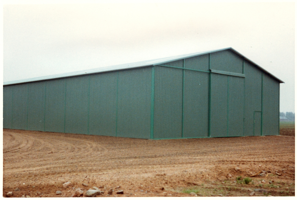 Vägstation R11, Grästorp. Förrådsbyggnad, plåthall, portar på gaveln.