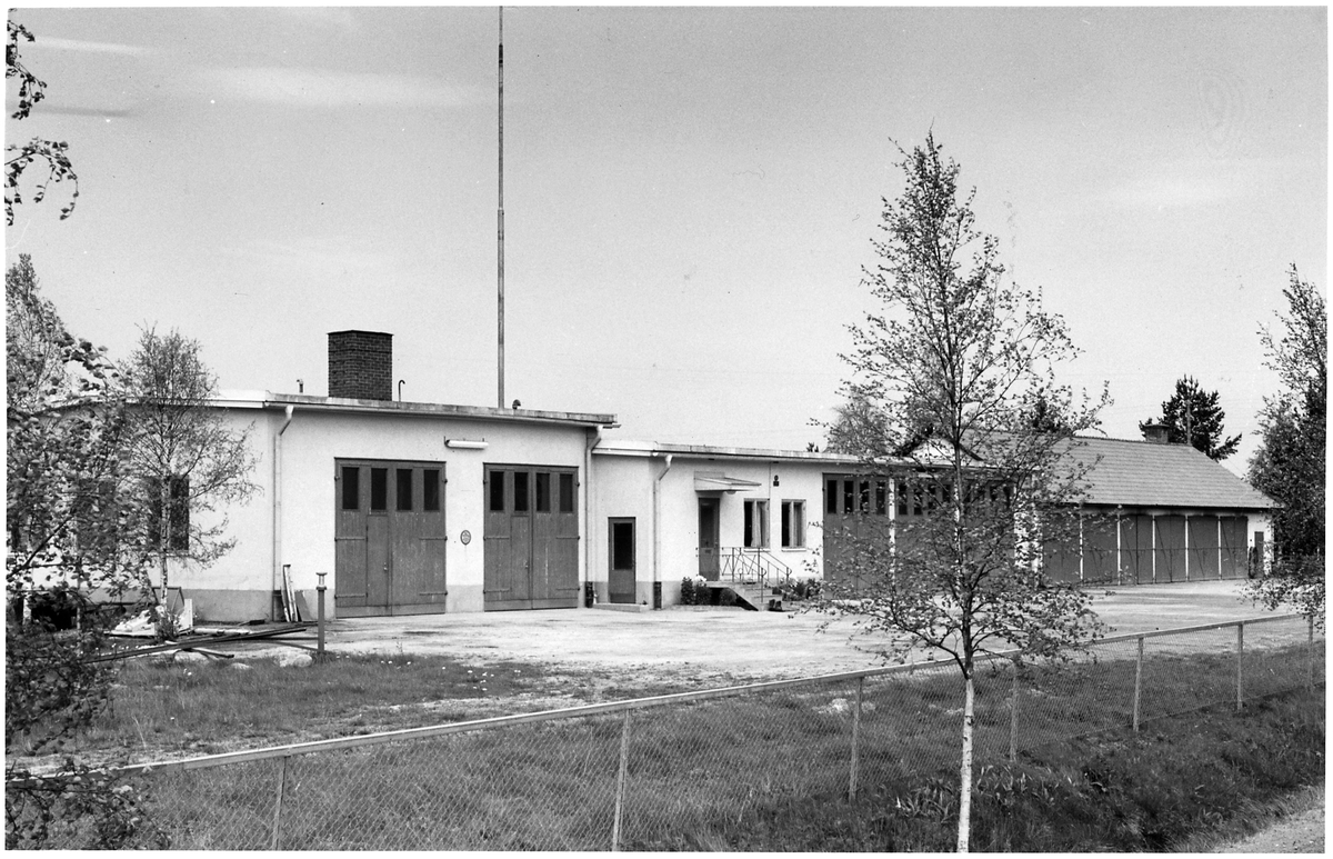 Vägstation Vmo X5, Edsbyn. Vägstationen huvudbyggnad. Från vänster verkstad, kontorsdel, garagebyggnader.