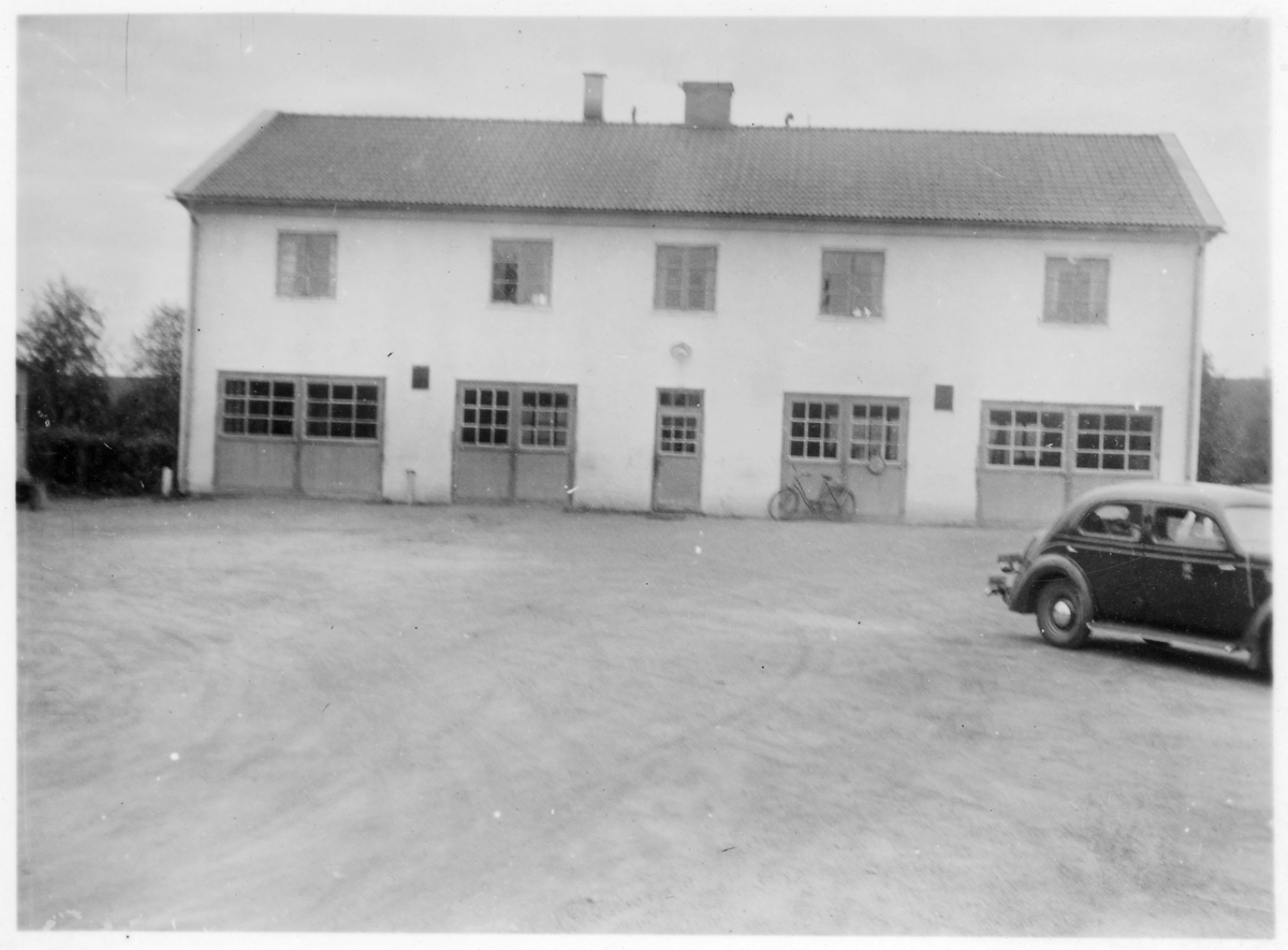 Vägstation W13, Älvdalen. Garagebyggnad i två våningar. Kontor eller eventuellt bostäder i övervåningen. På garageplan en personbil.