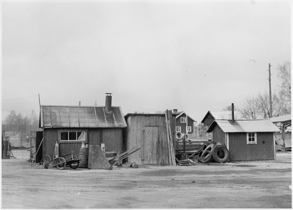 Vägstation T3, Hallsberg. Förrådsbyggnader. Upplag av diverse materiel, "skrot".