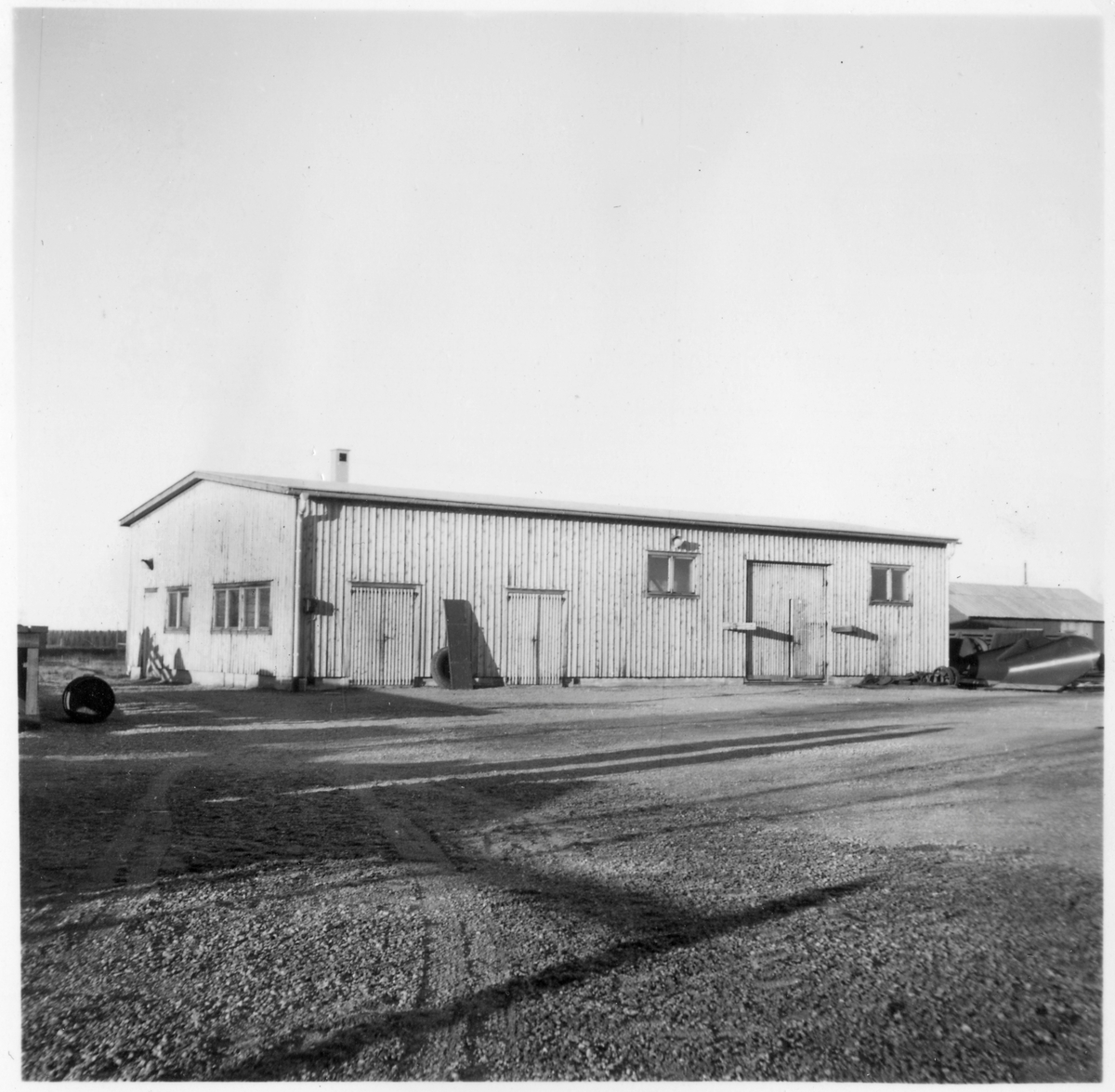 Vägstation BD9, Haparanda. Förrådsbyggnad. Spetsplogar till höger om byggnaden.