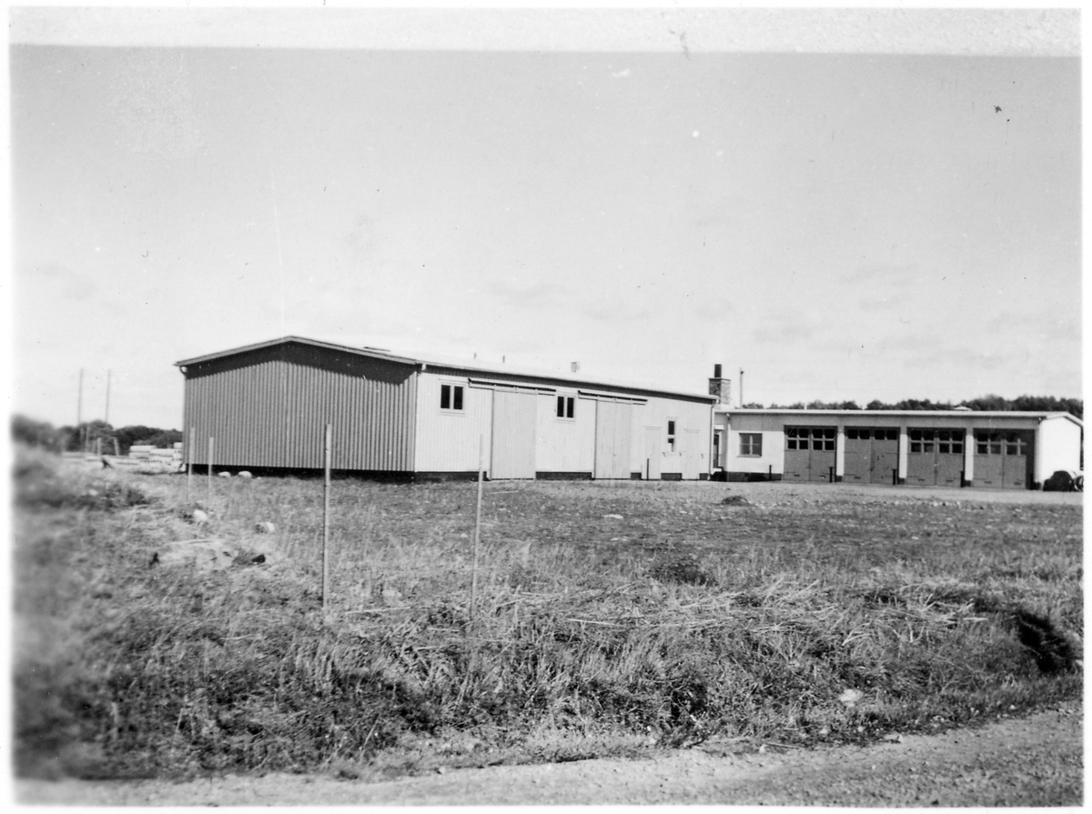 Vägstation N6, Varberg. Förrådsbyggnad och garagebyggnad (del av vägstationens huvudbyggnad).