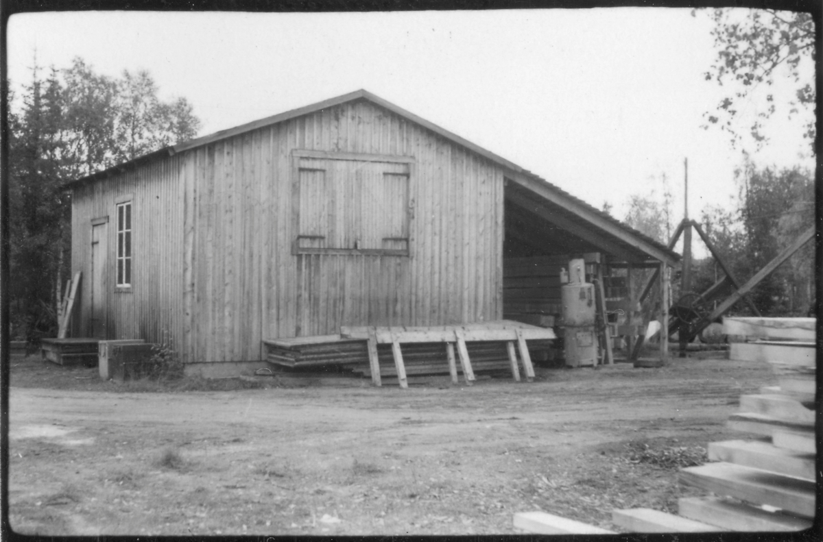 Vägstation AC20, Sorsele. Förrådsbyggnader. Upplag av diverse materiel. Ångpanna för trumtining.