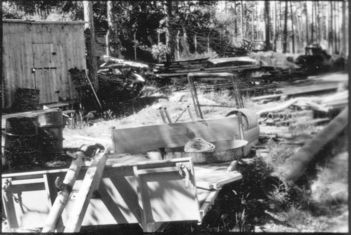 Byggnadsavdelningens förråd, i anslutning till Vmo X8, Ljusdal. Mindre träskjul, skrotupplag