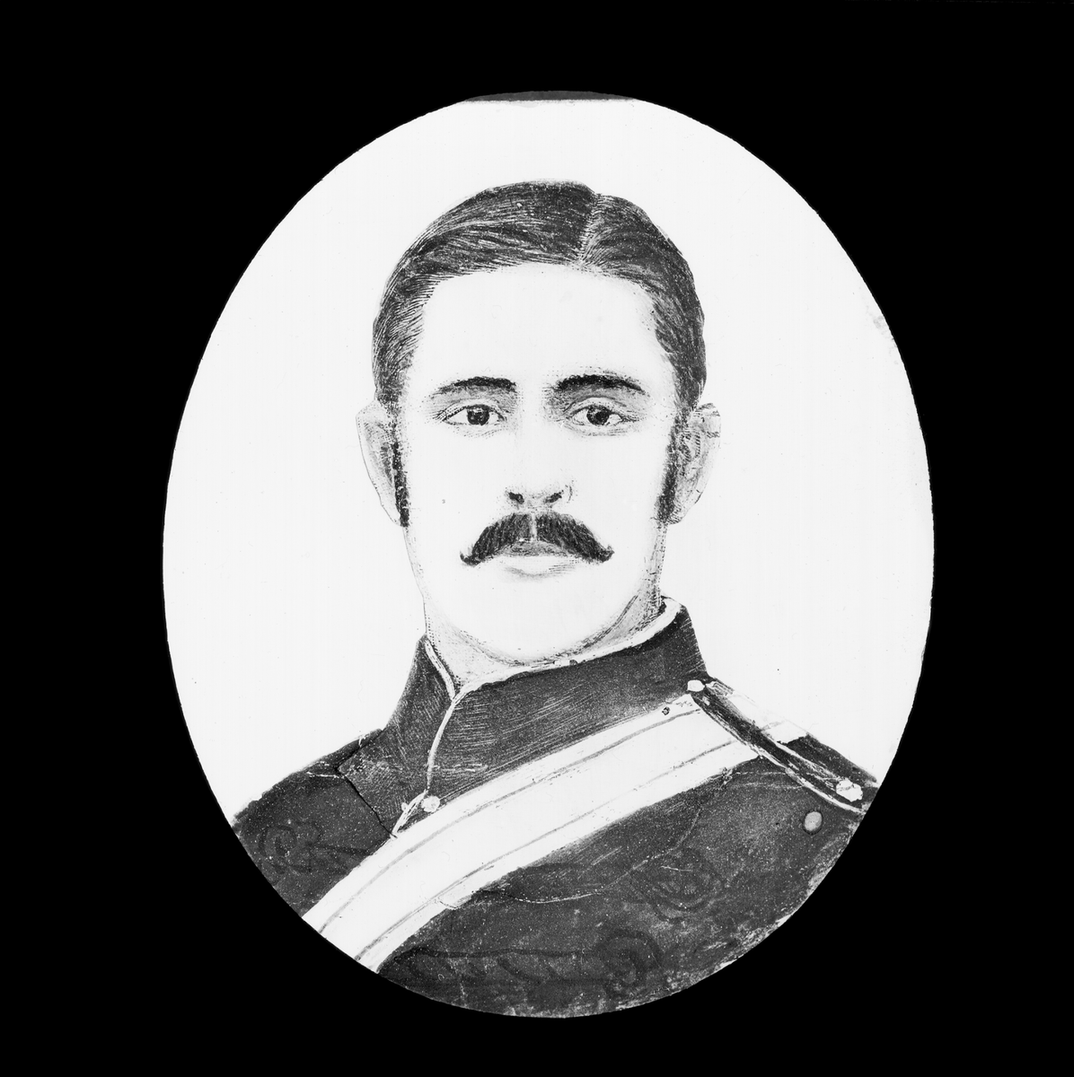 Ljusbild, handmålat porträtt, Livingstone och Stanleys sista expedition i Centralafrika 1865-73.