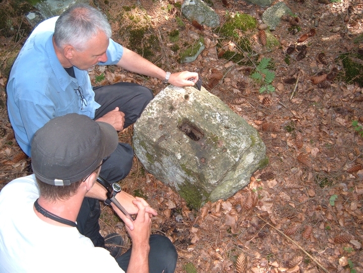 Foto av "Smedjesten", som står i mitten av en smedjegrund vid en torplämning.
