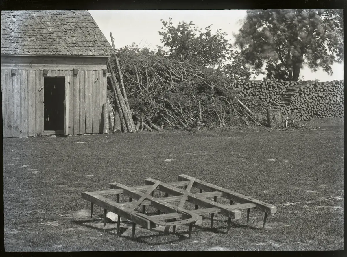 Denna modernare harv har smidda järnpinnar, en dyrbar investering. Dessutom har den två diagonala järnstag och drag av järn i främre kanten.