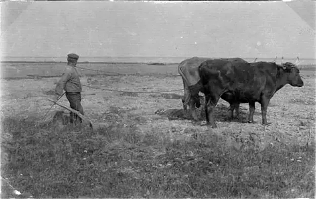 "Johan Johansson Mallgras i Alskä, fåisar bäi Nöigärdä". Märkligt nog har Alskog några mycket små jordplättar på rad vid Daustäde söder om Nöigärde, alldeles norr om skjutbanan. Det verkar helt otänkbart att Johan Johansson gått med stutar ända från Mallgårds för att bruka denna lilla plätt. Kanske arrenderade han mera mark här, så arbetet lönade sig bättre.