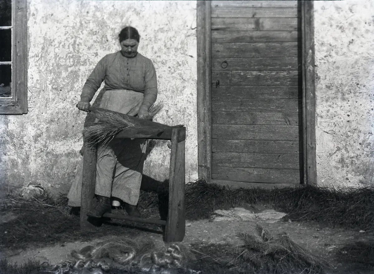 Hallsarve Anna Mårtensson krossar linets stjälkar med linbrakan.