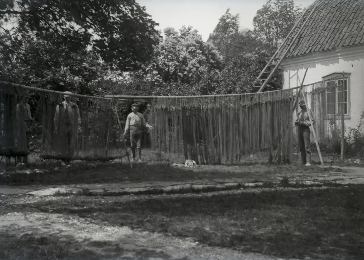 Det är nog inte bara Vilhelm Karlsson, utan också de andra bröderna och fadern Hans som rättar till näten efter urtagningen av fisken. Näten måste vara alldeles i ordning utan minsta trassel så de går att sätta nästa gång.