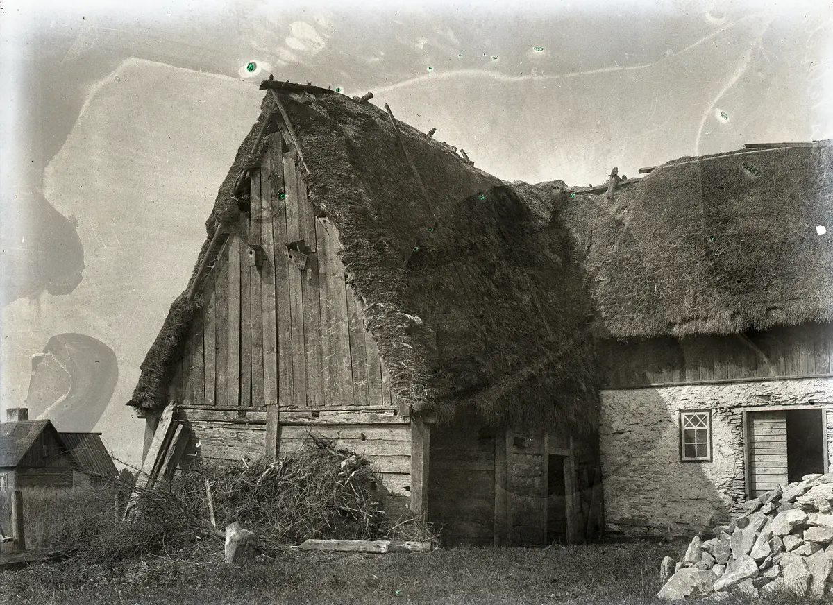 Den här bulbyggnaden är av mycket hög ålder, det ser man genom det ovanligt branta agtaket, den ringa bredden och de låga väggarna. Den kan vara en rest av ett större byggnadskomplex. Vad den har haft för funktion går inte att utröna. Närmast gaveln är ett portlider, som när bilden togs ser ut att användas som vedbod med tanke på huggpacken, rishögen och de kasserade virkesbitarna på gaveln, samt vedhögen t h. Bulbyggnaden kan härstamma från denna parts tillkomst 1732 eller möjligen ännu länge tillbaka.