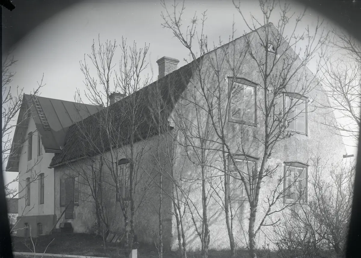 När Emil och Amanda byggde sitt nya hus, sparade man halva det gamla att bo i under byggtiden. Troligen återanvände man delvis de gamla väggarna i det nya huset. Här ser man den gamla huskroppen innan den revs bort och den nya bakom. Man ser att det gamla huset inte har någon sockel och att fönstren på gaveln sitter ganska mycket in mot mitten, vilket visar att det kan ha sitt ursprung i 1700-talet.