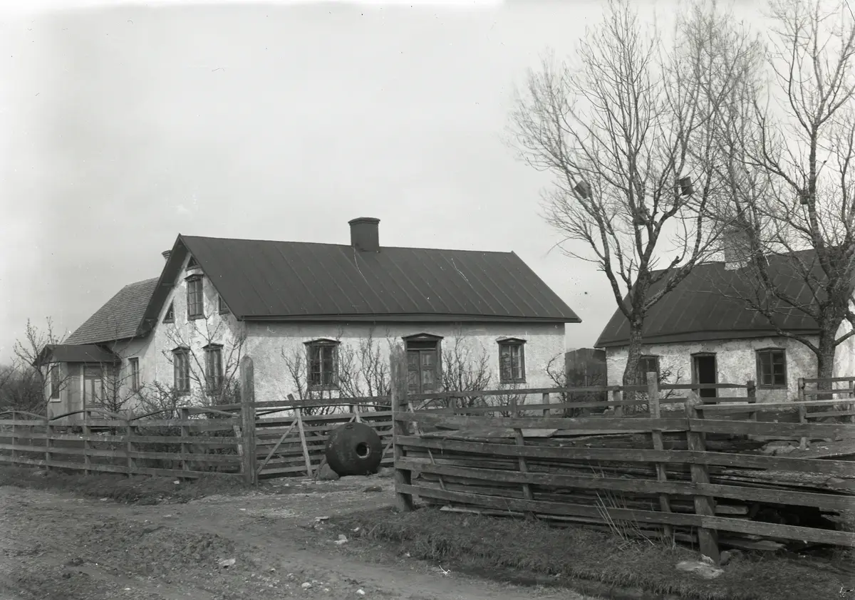 Manbyggnaden kan vara uppförd 1870 när denna part kom till. Det är en parstuga med typiska fönster för tiden med foder och trekantsfönster på gaveln. Taket var ursprungligen belagt med spån, senare papp. Köksbakbygget var tämligen nytt när bilden togs. Till höger står en brygghusflygel från 1870-talet. Vid grinden ser det ut som det står en kvarnsten!
