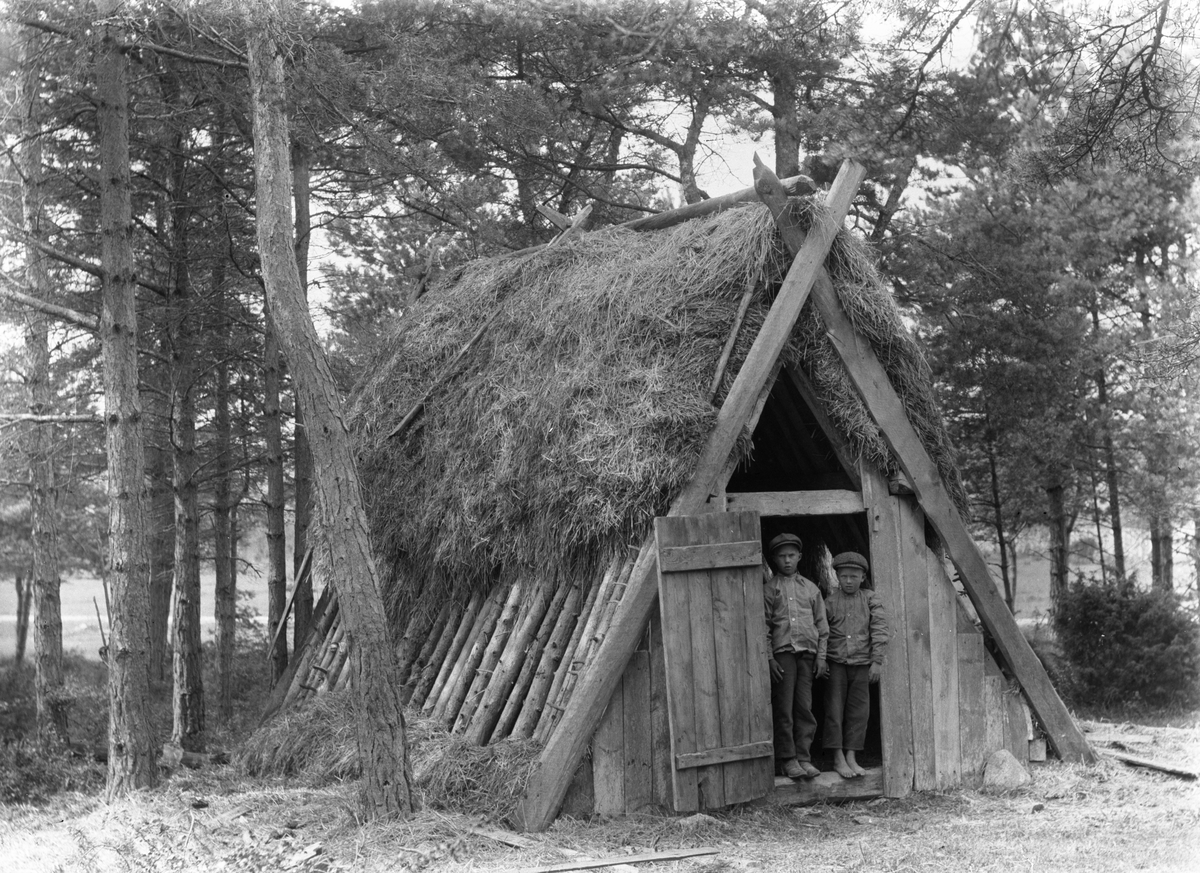 9 år efter den förra bilden på lambgiften, se Bild 1049, tycks den ha blivit lekstuga för pojkarna Oskar 10 år och Albert 8 år. Var giften har stått är ännu inte känt.