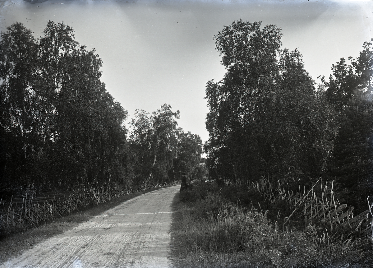 Möjligen är bilden tagen mot När ungefär där Ljunggrens åkeri ligger idag på gränsen mot När. Precis där vägen försvinner i bild står en person!