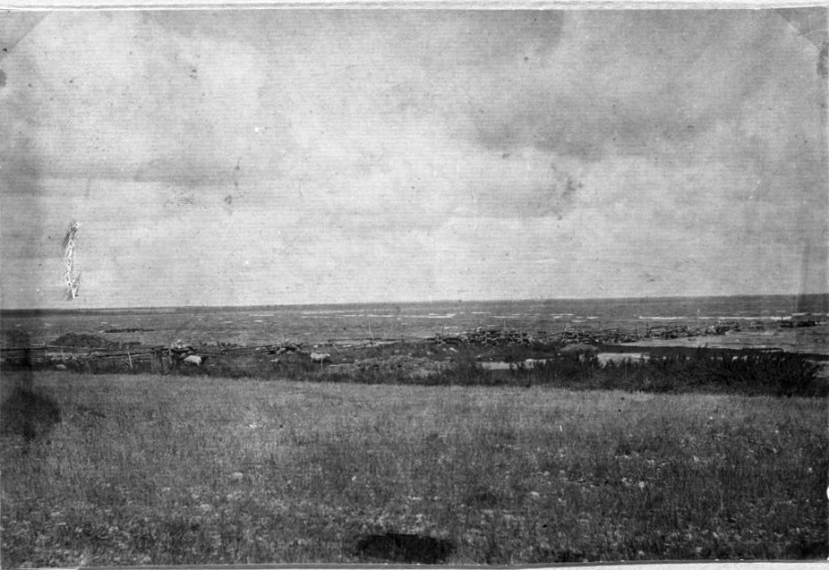 Masse tog många bilder av stranden vid Nöju, se Bild 449-454, 468, 481, 197-198, 1402. Här är motivet i första hand stängslet med de stenfyllda träkistorna som Masse har varit ute efter, utstugor kallade. Det var viktigt att kunna stänga av för betande djur även om det var lågvatten. Utstugorna måste vara kraftigt byggda för att klara av stormar och sjöis.