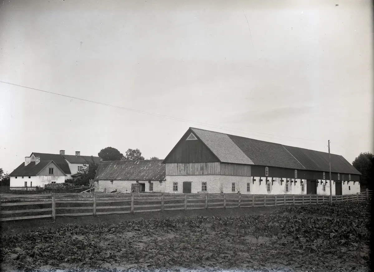 På ladugården ser man hur den nya delen ännu inte hunnit bli färdigmålad och färdigputsad. I den äldre delen ser man tydligt de nyinsatta fönstren, vilka finns kvar än idag. I mitten ses portlidret och portarna längre bort går till ladan.