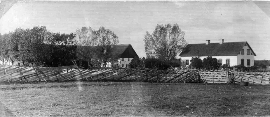 En klassisk höstbild från Mattsarve visande manbyggnaden och den tämligen nya vinkelbyggda ladugården, en av socknens största på sin tid bakom höga popplar (pilar), vilka var populära träd att plantera på socknens gårdar under 1800-talets andra hälft. Genom grinden till beteshagen går en liten väg upp till gårdspartens kvarn, vilken alltjämt finns kvar i gott skick. Bandtunar hägnar fortfarande in ägorna.