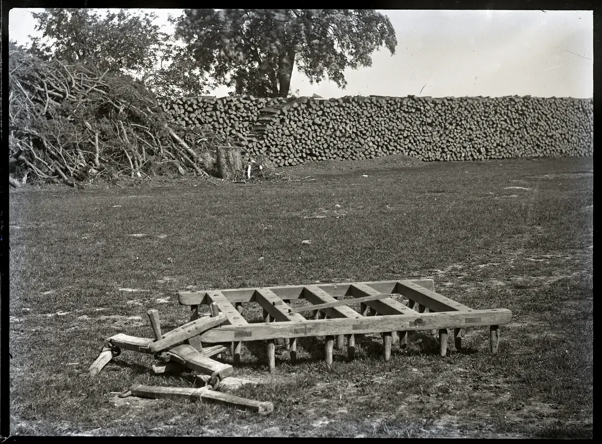 Detta jordluckrings- och ogräsrensningsredskap är helt gjort av trä och mycket välbyggt för att klara påfrestningarna av lerig och stenig jord. Harven har drag med svänglar för två hästar som troligen ligger löst framlagda i "hörnet" för attsynas.