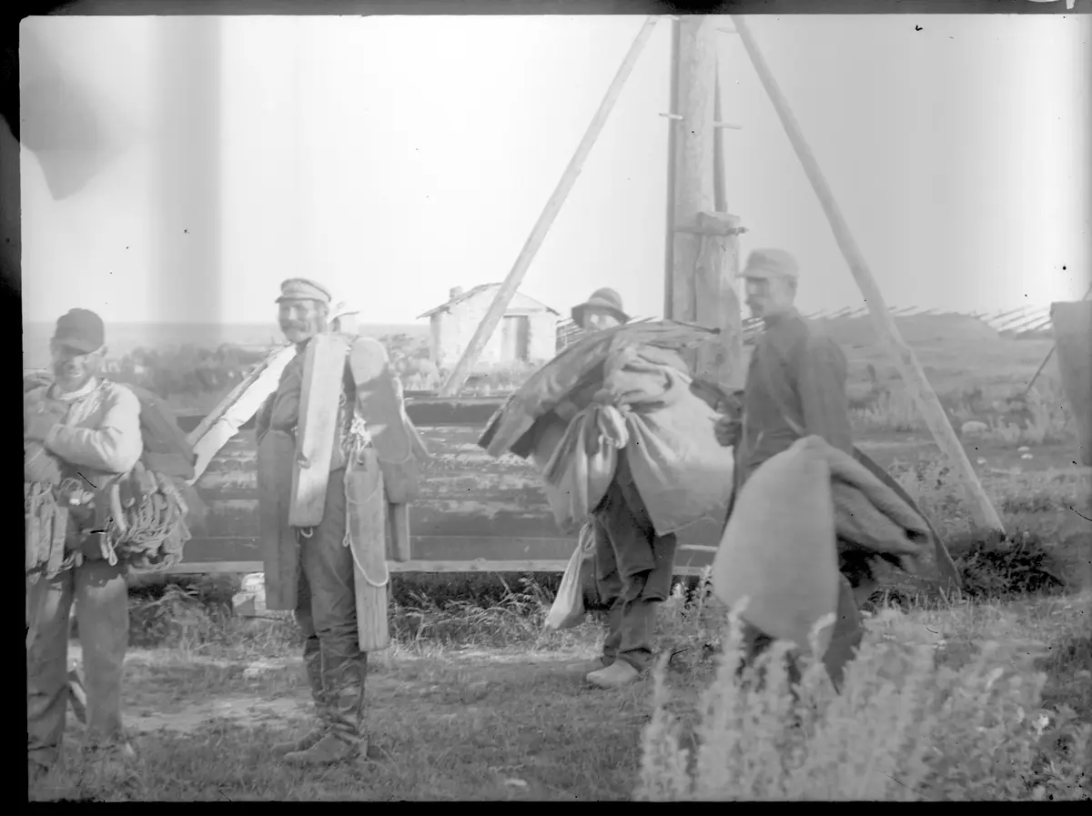 Denna sena augustikväll skall ovan nämnda karlar ut på drivgarnsfiske. De har förutom näten med sig klåbbår, en sorts flöten, segel och filtar, kläder och matsäck. Det var det vanliga att man rodde/seglade långt ut till havs, la näten och band ändan i båten, så att näten hängde efter båten som en lång svans, det kallades rakfiske eller ligga på rak. Sedan la man sig och sov i båten medan den drev, vilket kunde vara lite äventyrligt, man kunde bli påseglad av ett fartyg. Nästa dag drog man näten och rodde i land, eller bara synade dem och låg kvar till sjöss.