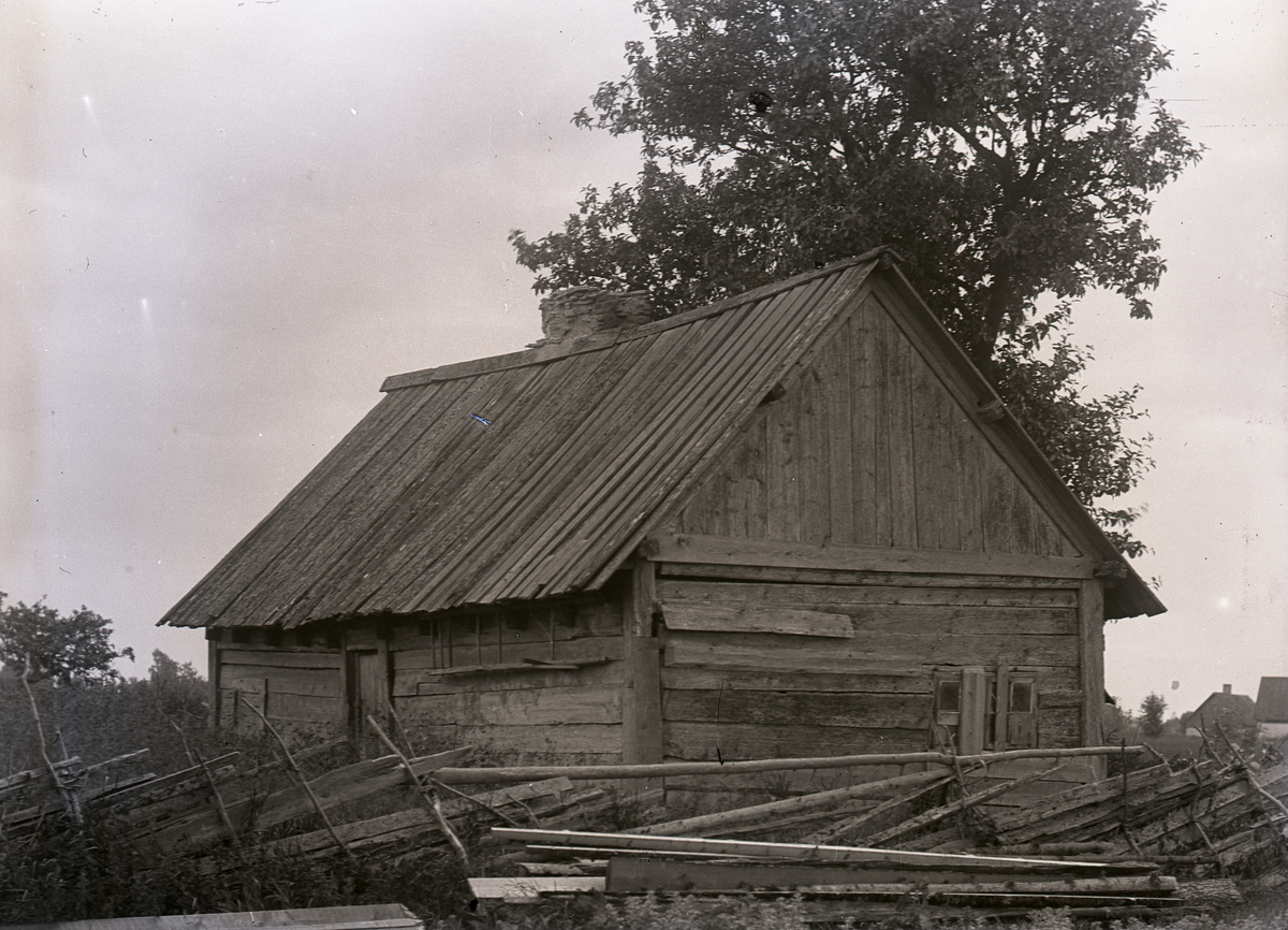 Här ser vi det mycket gamla huset från andra håller. Baksidan är blind, här finns bara en dörr, vilken kan ha gått till ett minimalt kök på husets baksida, iom att man lagade mat över öppen eld, behövde man inte kosta på sig ett fönster. Möjligen kan det vara ett igensatt fönster längst bort mot hörnet tillhörigt vardagsstugan. Salen hitåt har bara ett fönster på gaveln. Så fönsterfattiga var bostadshusen för 250-300 år sedan. Väggarnas bular är hellängdare utan skarvar, vilket också är ett mycket gammalt tecken. Dörrposterna fungerade här som mötare, stående stolpar där bularna skarvades.