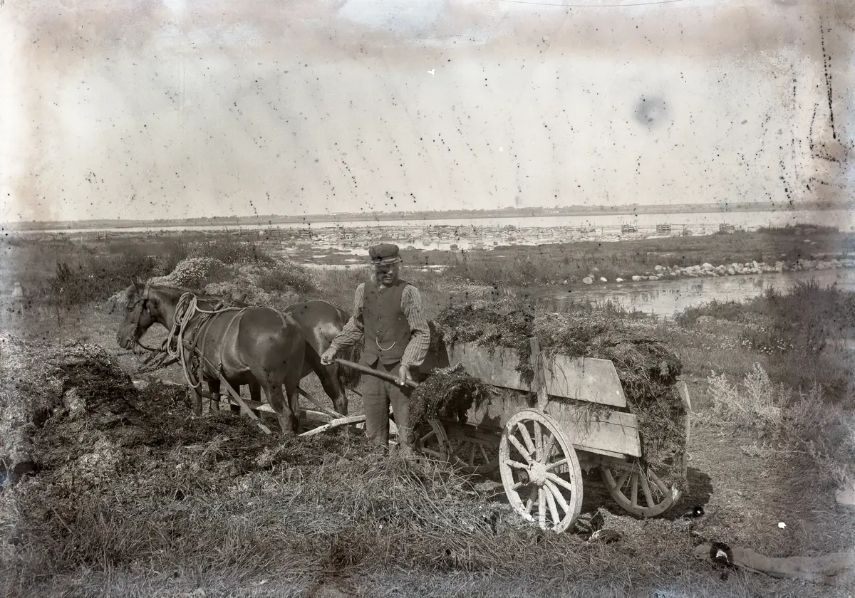 Fie Jakob Karlsson lastar ett släklass på vagnen. Lasset är förvånansvärt smalt, men blir i stället ganska högt. Det verkar vara vanligt med smala lass när det är tungt. Det är Fäi-Jakås egna hästar han kör med denna gång.