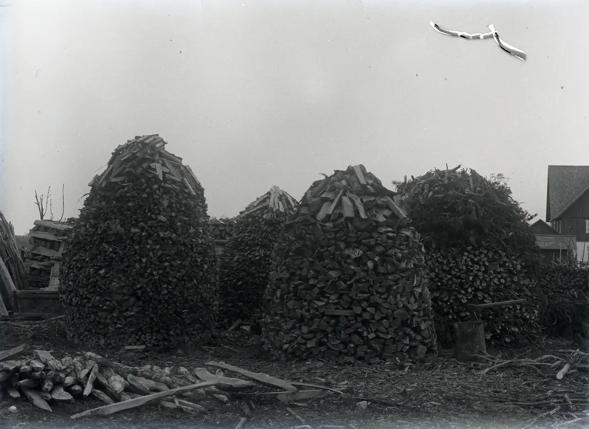 Så här fina vedstackar hade Kauparve Lars Persson gjort, vilket vittnar om att han hade ett visst nöje i att arbeta med veden. Bitarna är mestadels fint kluvna för att passa till en järnspis. Att stapla runda vedstackar var en konst, de hade mycket lätt för att rasa.