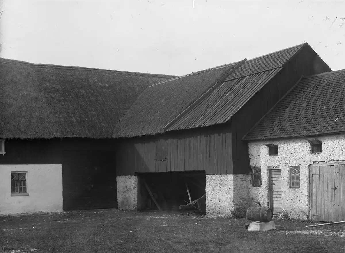 På ladans framsida står det gamla tröskuset kvar. Det är höjt sedan uppförandet med ett högt foderloft i trä. Lustigt nog har det tre taktäckningsmaterial: halm, falar och spån. Tröskvandringen är ännu kvar, en dragbom skymtar i öppningen. Det tillbyggda huset på gaveln kan ha innehållit lammhus och vagnbod. På loftet var det magasin, det visar de öppna vädringsluckorna, säden låg där inne på golvet och luftades ur denna soliga septemberdag.