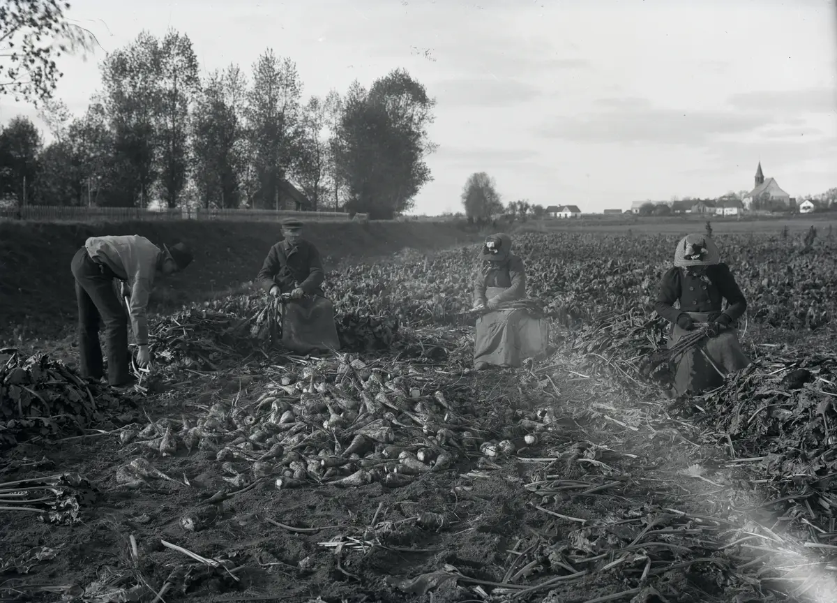 Se Nr 157! De upptagna betorna kördes med häst och vagn till Stånga järnvägsstation för vidare transport med tåg till Roma sockerbruk.