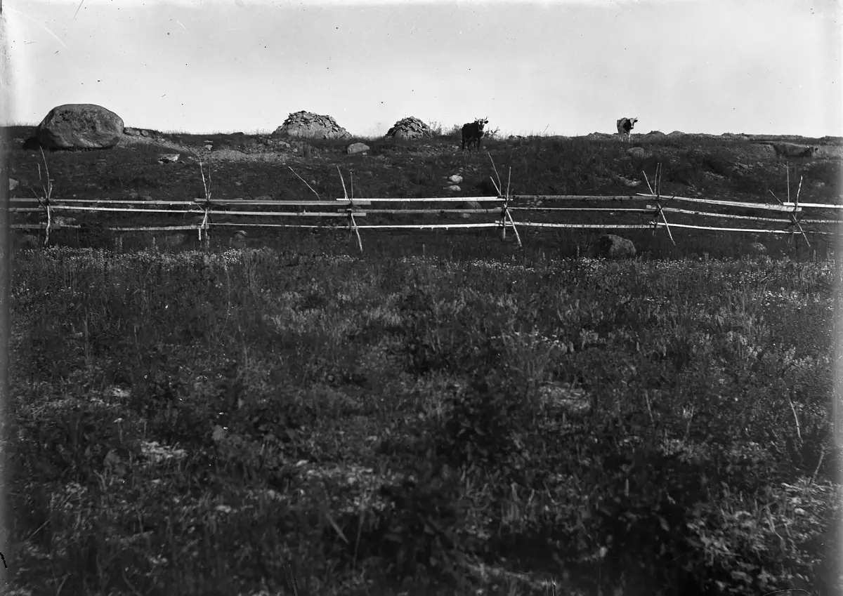 Det här ser ut att vara samma räcktäun som på Nr 192! I så fall är bilden tagen upp mot backarna från åkern norr om Backvägen vid Bogs backe.
