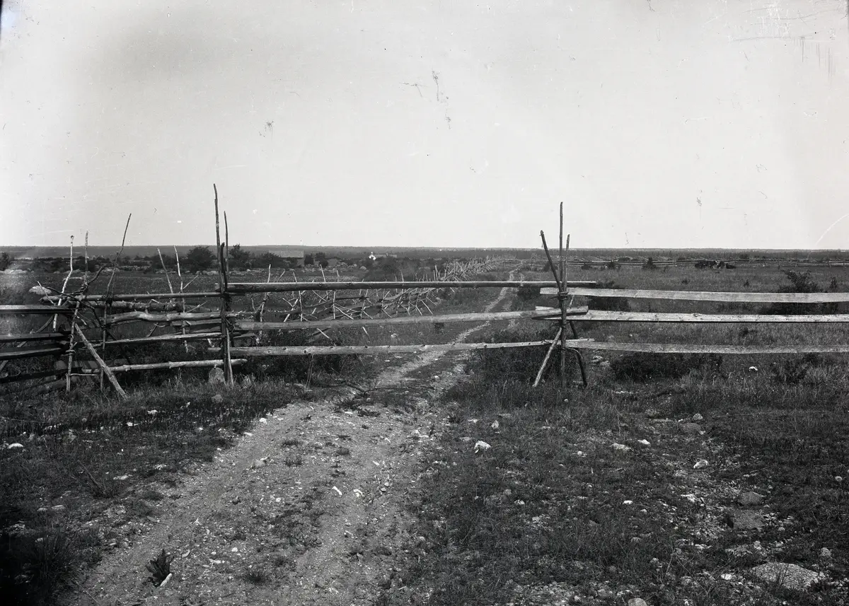 En räcktun med tre räckar korsar den lilla vägen. För att lätt kunna öppna är räckarna lösa över vägen och de bildar ett räcklid. Se Nr 201. Till vänster står en räcktun med fyra räckar.