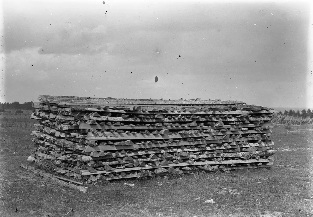 Vilhelm har sågat en stor mängd trolar som här ligger luftigt på tork.