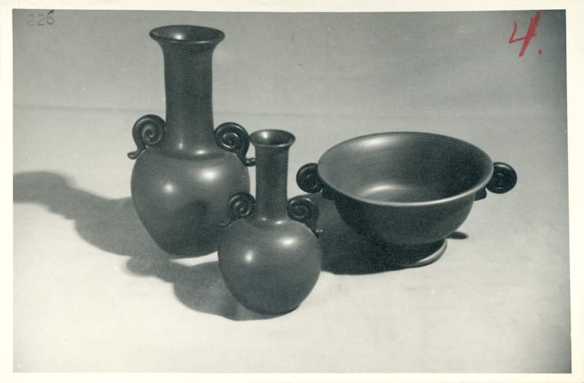 Vaser och en skål från Bo Fajans, formgivare Eva Jancke-Björk, 1900-talets mitt.