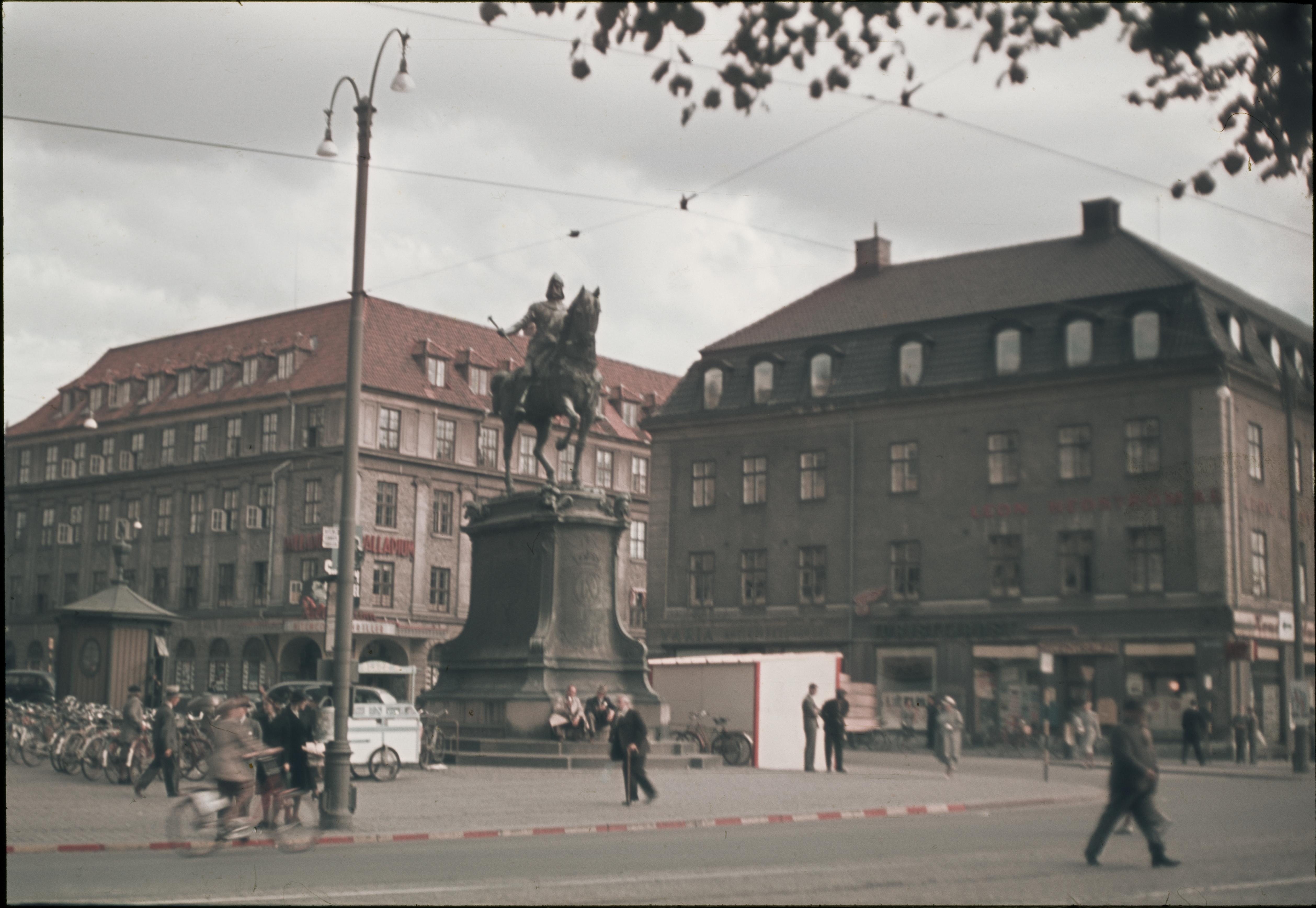 Kungsportsplatsen med ryttarstayn "Kopparmärra" som föreställer kung Karl IX till häst. Återfotografering år 2010: se bild ND32812a