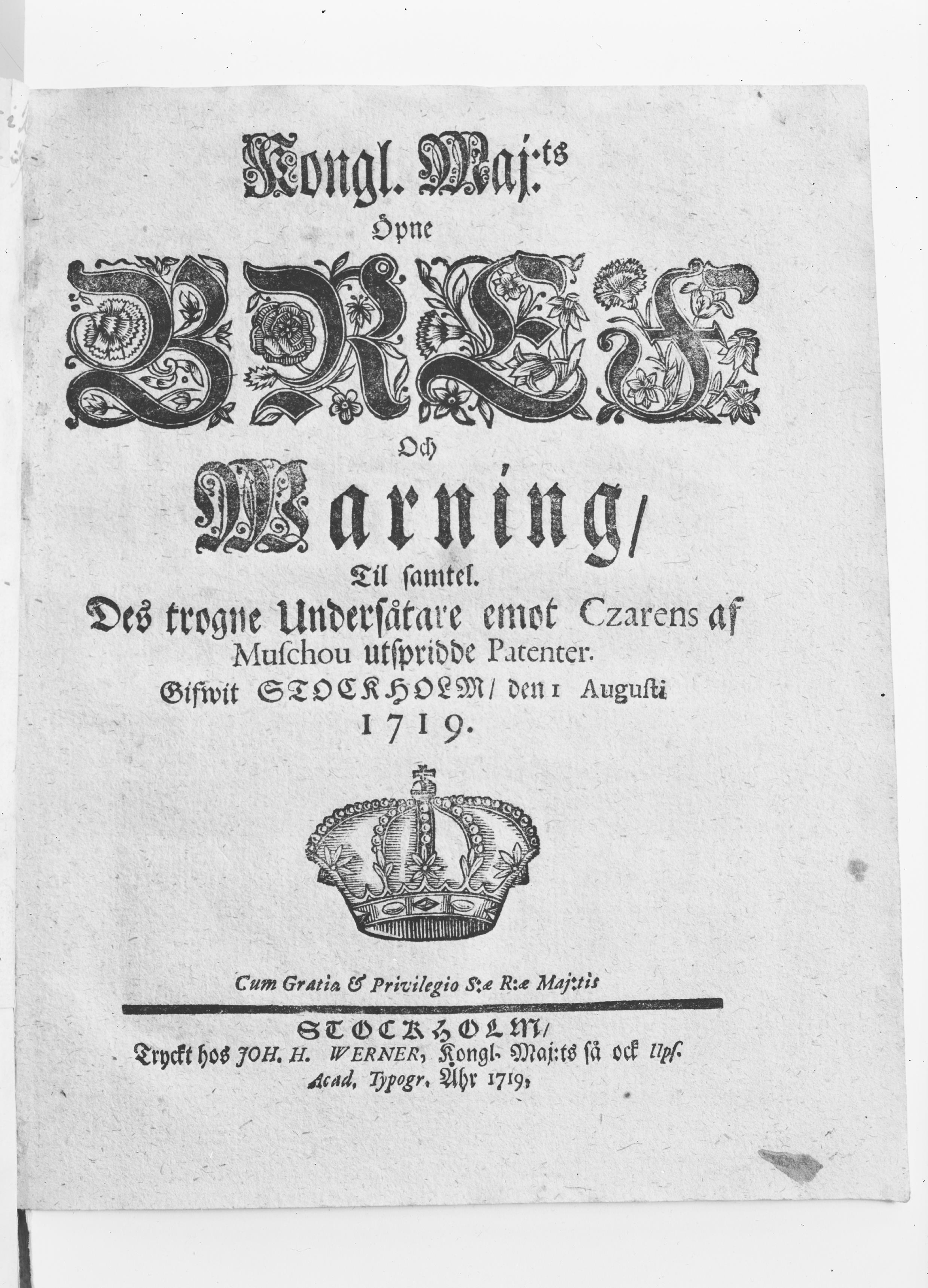 Skrift angående Rysslands krig mot Sverige? 1719.