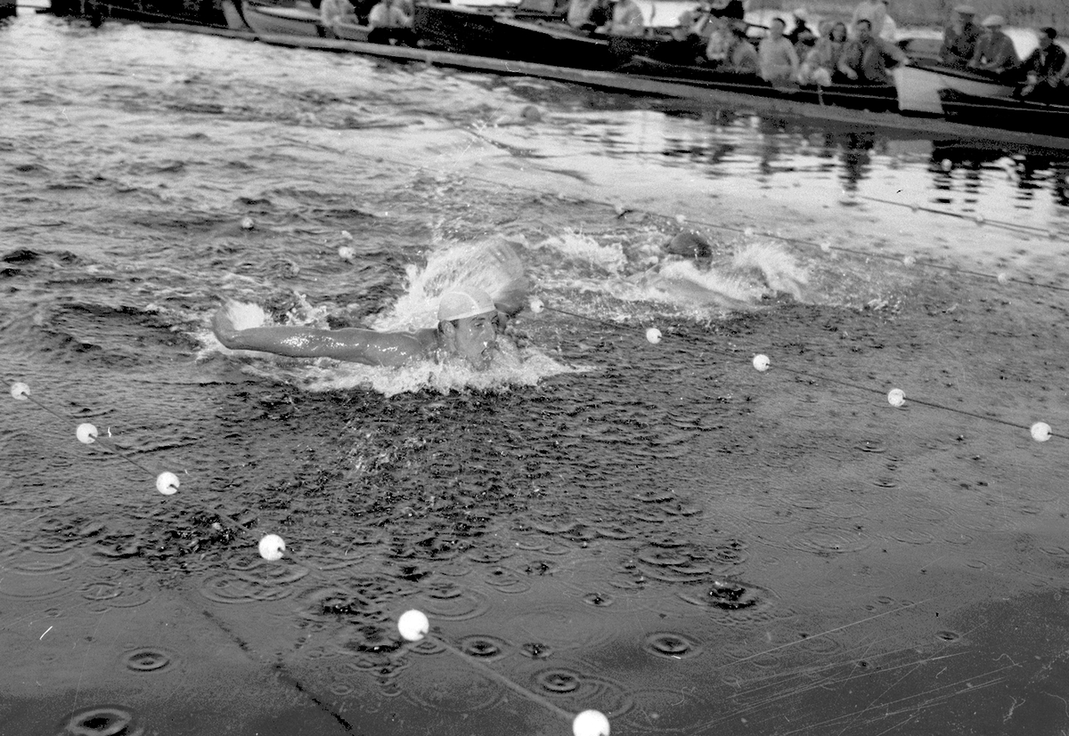 Simtävling i Skutskärsbadet. 8 augusti 1952.