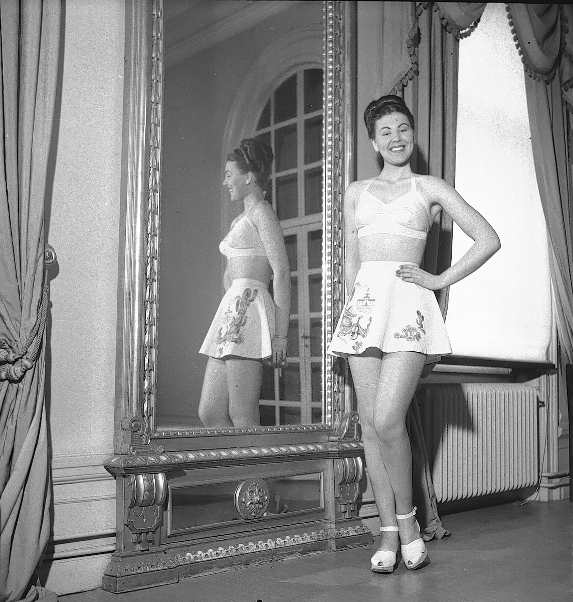 Titel: Sjöströms Fabriksbod. Mannekänguppvisning i Stadshuset. April 1946