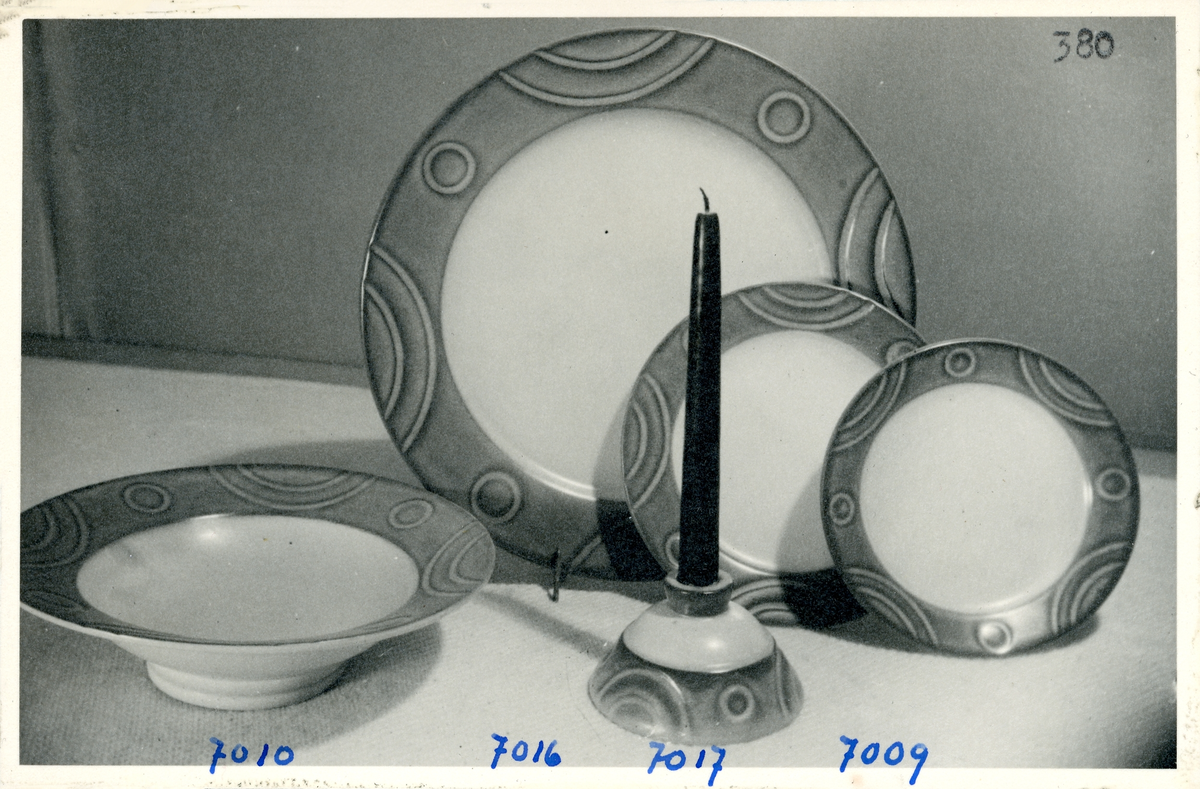 Servis med ljusstake från Bo Fajans, 1900-talets mitt.