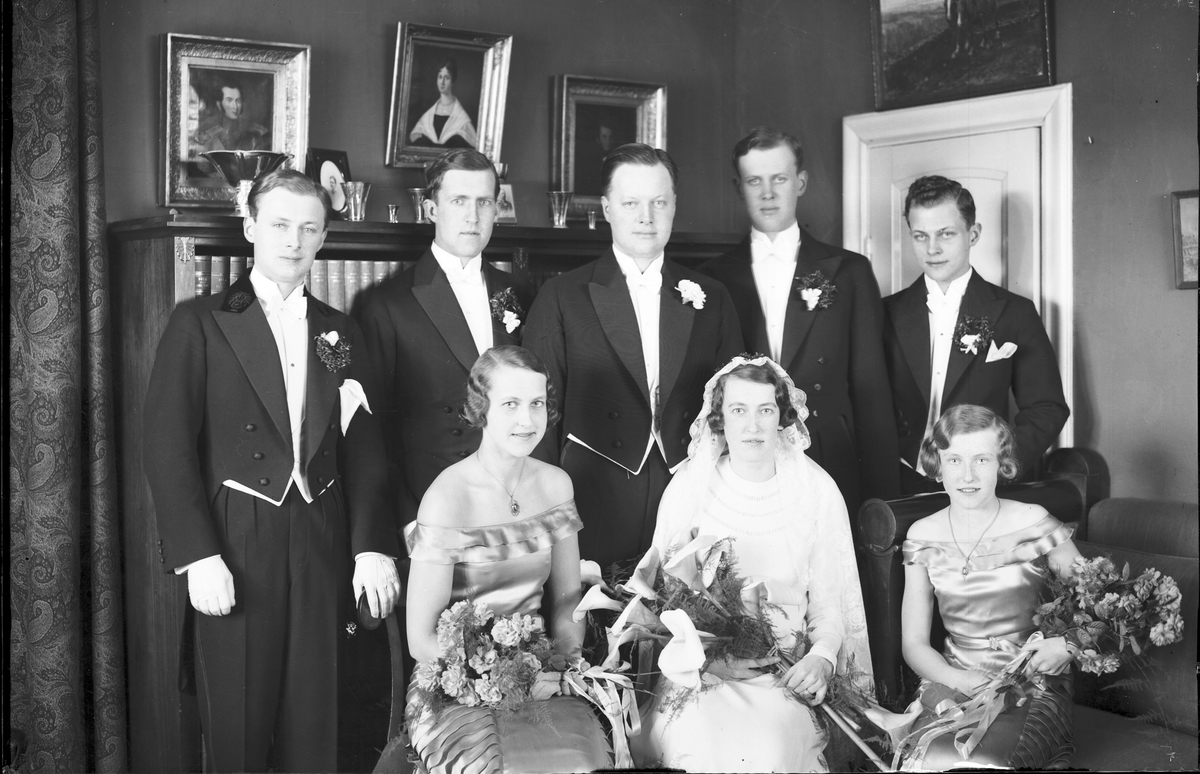 Brudpar med marskalker och tärnor