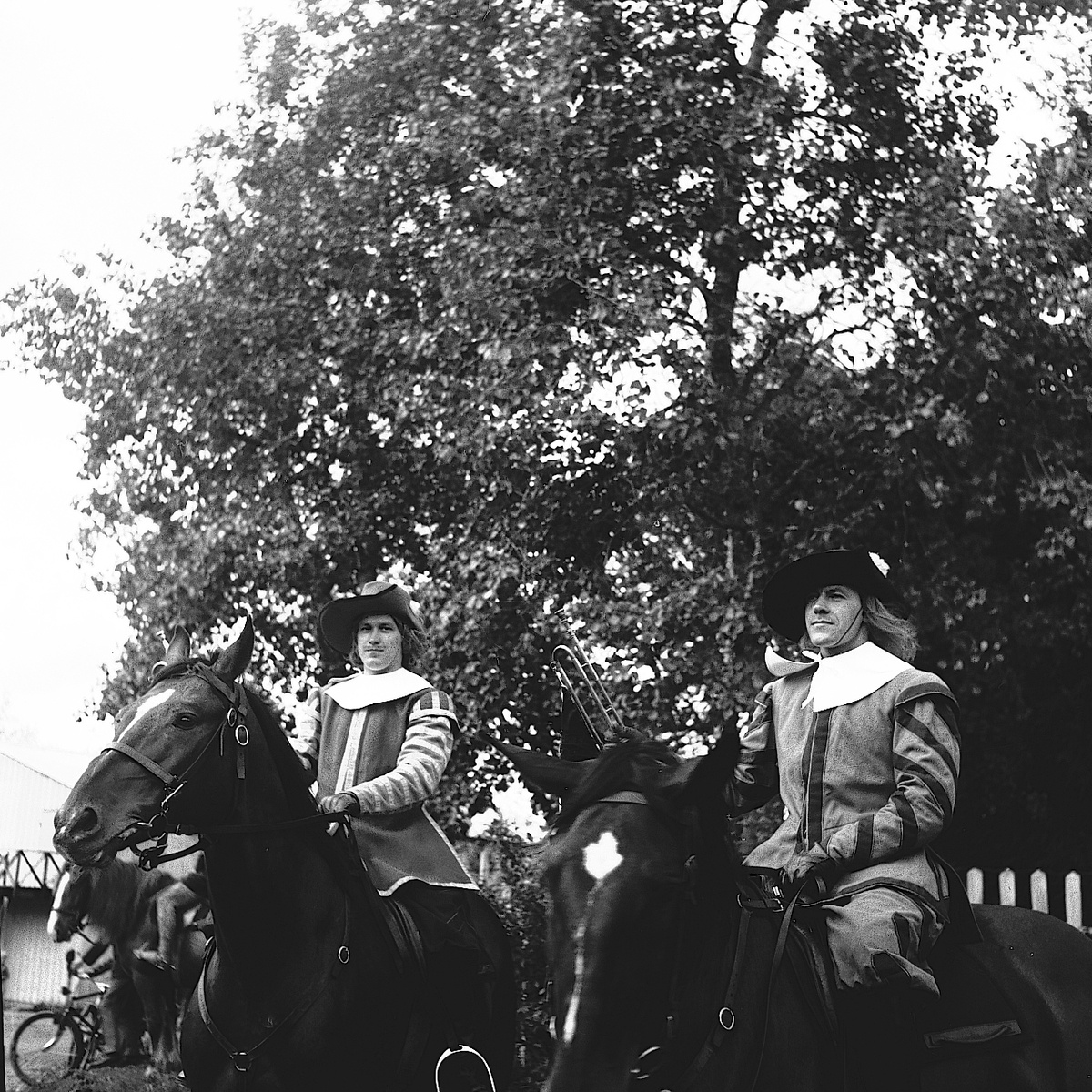 Kamratfesten på Kungsbäck. Maskeradklädda ridande män.