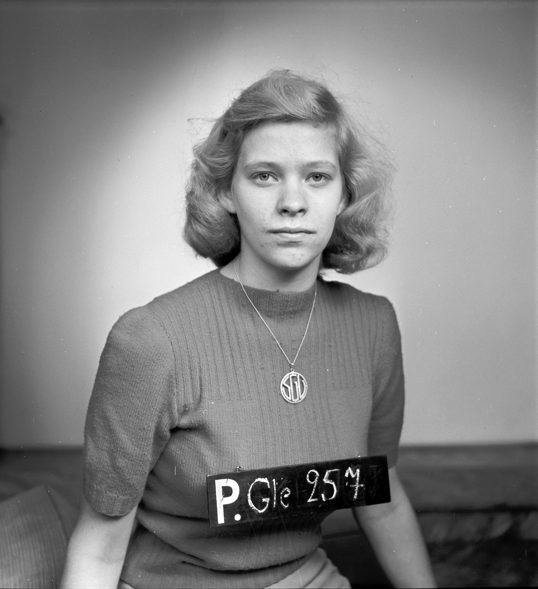 Okänd dam. Postens legitimationskort P. Gle 250 - 257. Den 1 oktober 1949.