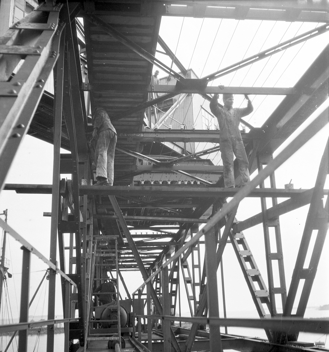 Målarmästare Östlund, målning av kranar. Juni 1937